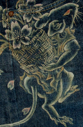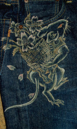 真と全く同じ仕上がりにはなりません。 また、お使いのOS、モニター等により画像と 実際の色とは若干違います。 最善の努力はして参りますが、どうぞご理解、ご了承下さい。 また、デニムの色合いが濃い場合は絵柄はくっきりと、逆に薄い場合は朧げなカンジに仕上がります。 |